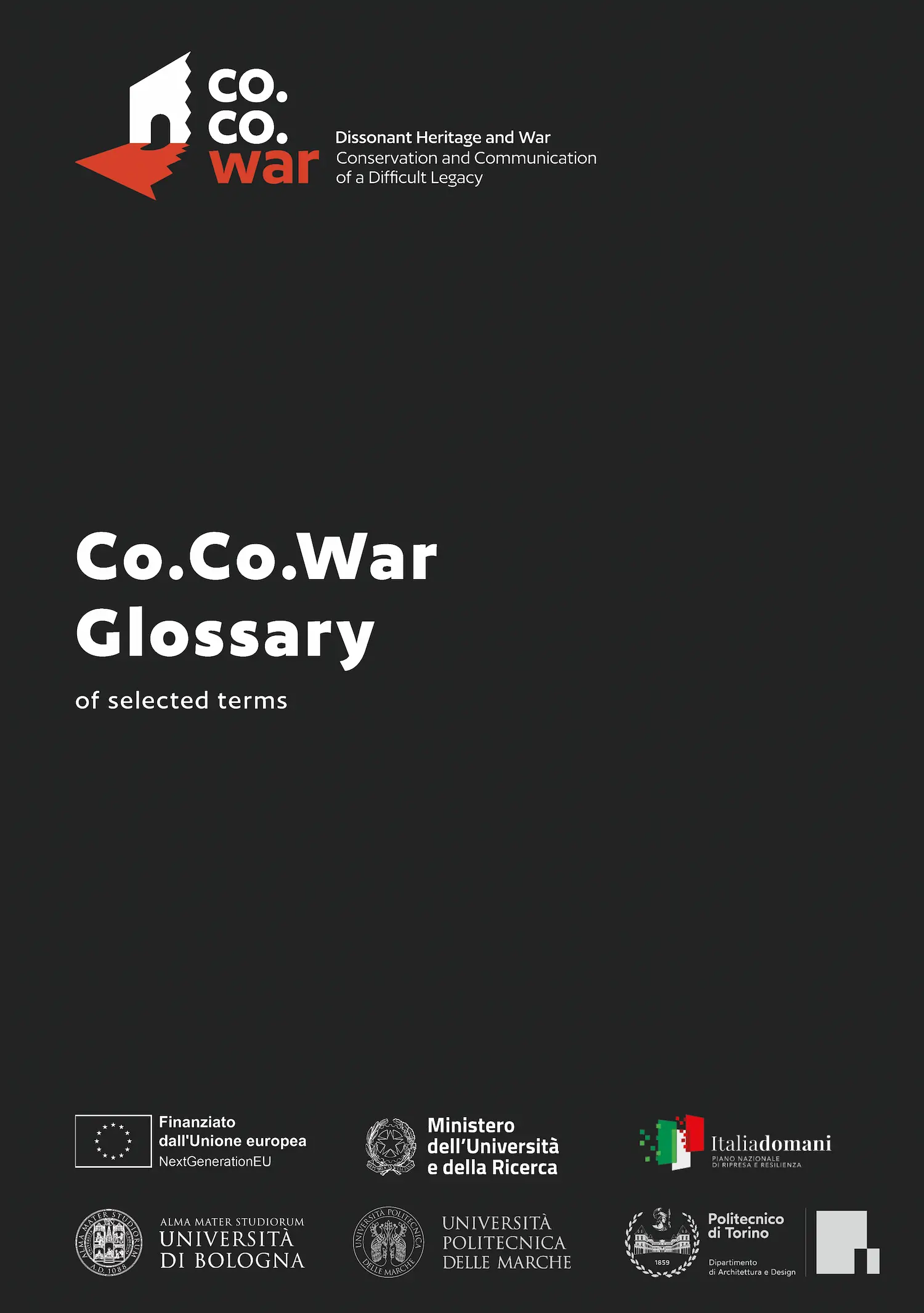 The definitions of the terms are primarily drawn from authoritative reference works (Charters, Recommendations, Declarations, Manuals, Glossaries) published by internationally recognized organizations active in heritage conservation and protection (UNESCO, ICOMOS, ICCROM, IUCN, UNDRR and the Getty Research Institute). These are complemented by studies considered milestones in Dissonant Heritage research, conducted both by individual scholars and by international bodies (e.g., the Urban Agenda Action Group on Dissonant Heritage, Contested Histories). Each term is associated with one or more definitions, depending on its complexity and the diversity of its references, which are presented in chronological order. The “Related sources” field introduces additional references that address closely related themes. Furthermore, notes marked with the Co.Co.War logo indicate how certain terms are conceptualized and operationalized within the research and field activities. These notes reflect both the Co.Co.War project’s perspective and its contribution to the contemporary scientific research on dissonant heritage.