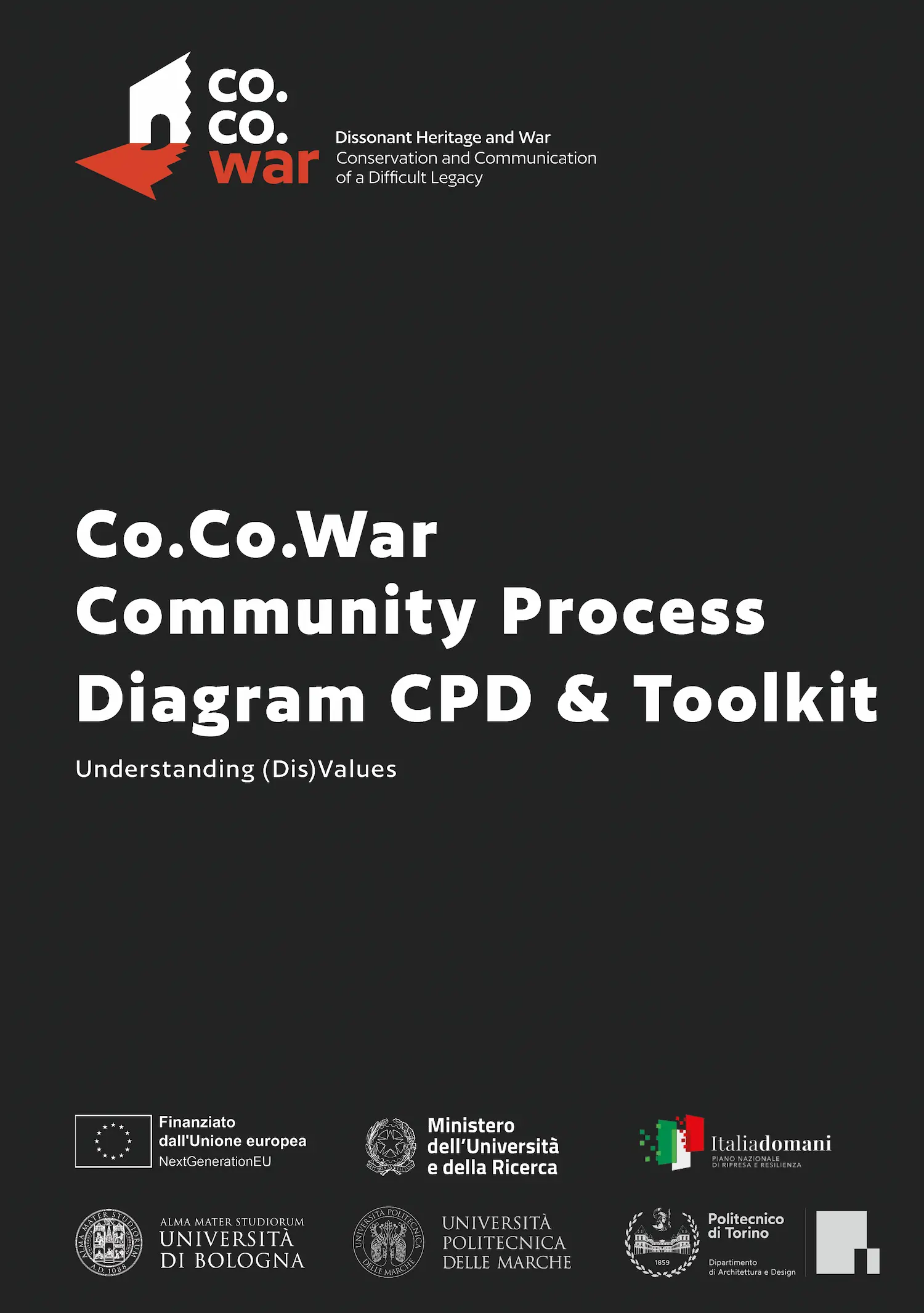The Community Toolkit is a methodological resource developed within the Co.Co.War research project, which focuses on the conservation and communication of architectural heritage associated with war, conflict, and contested memory. Rather than offering prescriptive solutions or standardized participatory models, the Toolkit provides a critical framework to support professionals and researchers working in contexts marked by dissonant, traumatic, or conflictual heritage. Its primary aim is to help navigate the ethical, epistemological, and relational complexities that arise when engaging communities around difficult legacies. The Toolkit is grounded in the understanding that dissonant heritage cannot be addressed solely through technical expertise or generic participation methods. Dissonance emerges from layered perceptions, memories, silences, power relations, and mediations that influence how heritage is interpreted, negotiated, rejected, or avoided. Responding to these dynamics requires not only appropriate tools, but also a coherent methodological logic that determines when and how engagement occurs, what kinds of knowledge are produced, and how risks are identified and managed throughout the process.